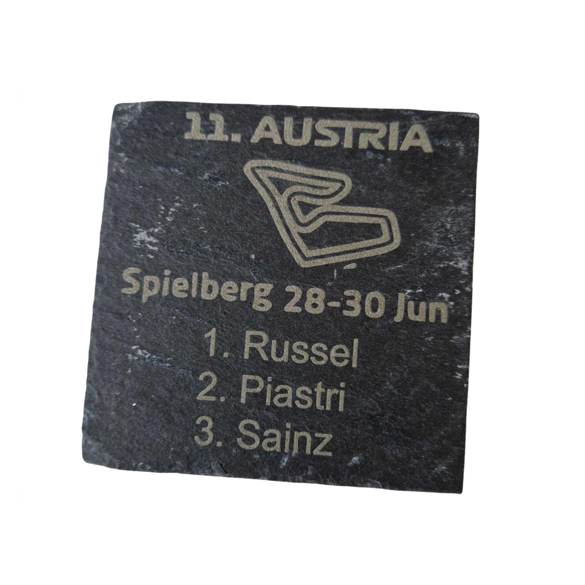 Ontdek onze prachtige leistenen onderzetter (10x10cm) met de top3 winnaars van de GP F1 race van dit weekend, perfect voor het toevoegen van een vleugje elegantie aan je interieur. Met de hand vervaardigd en met de mogelijkheid om de naam van de winnaar te personaliseren, is deze onderzetter een stijlvolle en gedenkwaardige toevoeging aan elke ruimte. Bestel vandaag nog en geef je tafelsetting een vleugje Formule 1-glamour!